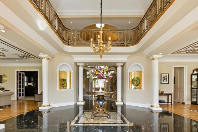 Elegant Mediterranean Classic two-story estate blending old-world charm with modern comfort. Located at the end of a quiet cul-de-sac for exceptional privacy, the home features Roman columns, ornate ceilings, and an open floor plan. Main level includes formal living and dining rooms with butlers kitchen, mahogany-paneled library, office suite, and kitchen-family room overlooking the lush backyard. Five generously sized bedroom suites upstairs, including an expansive primary suite with sitting area. Resort-style backyard with pool, spa, and home theater. Minutes to Sand Hill Road, Stanford, and major tech campuses. Top Los Lomitas schools. MLS # ML82033187