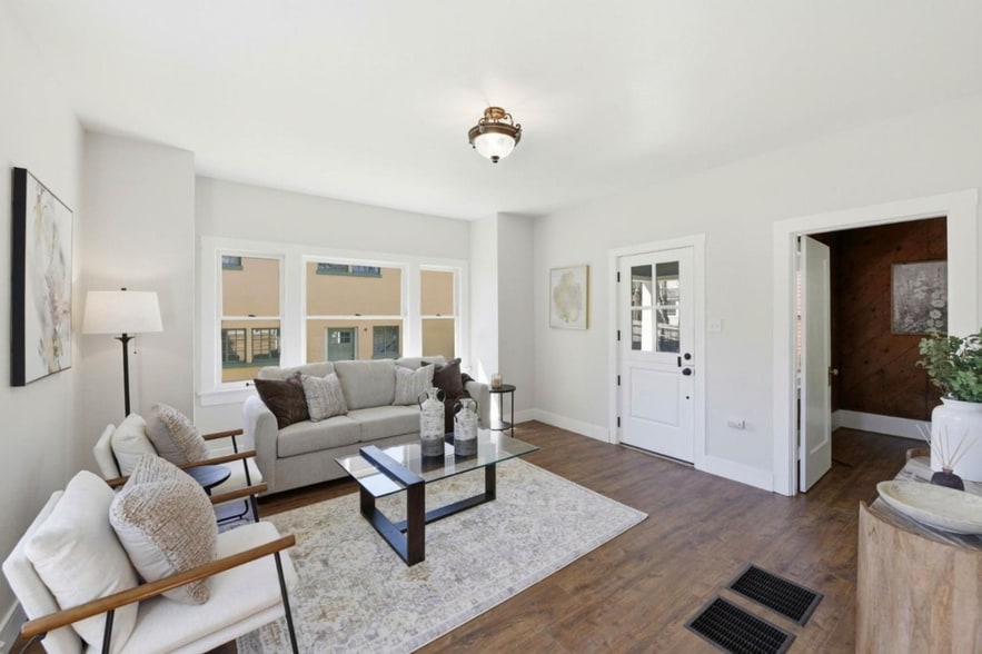 Modern Updates: Fresh flooring and newer kitchen appliances.