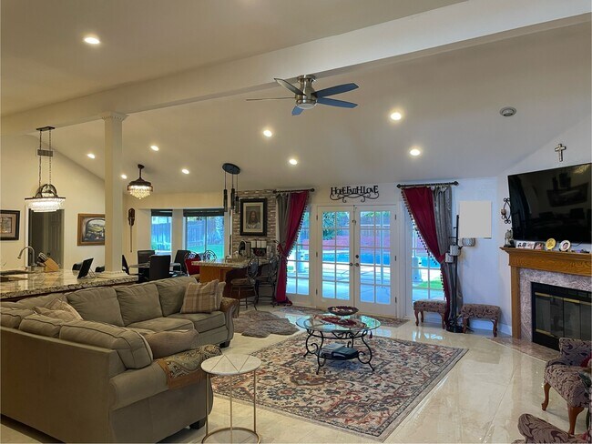 Luxurious Home for Rent for elite family! Where Elegance Meets Comfort! Amazing floor plan: 4 Bed + 3 Bath + Game Suite with Pool Table included, with a kitchenette+ Huge Living room + Dining room Resort style backyard, decorative traps, POOL & Jacuzzi, light branches across the yard for family/friend gathering events! One bedroom furnished with Versace style bedroom set. Many fruit trees (Fig, apricot, grape, pomegranate, citrus, tangerine and orange)! Located at the Most desirable area in Bakersfield, walking from Liberty parks and minutes away from the Marketplace! 3 car garage. Pool and Palm tree maintenance covered.