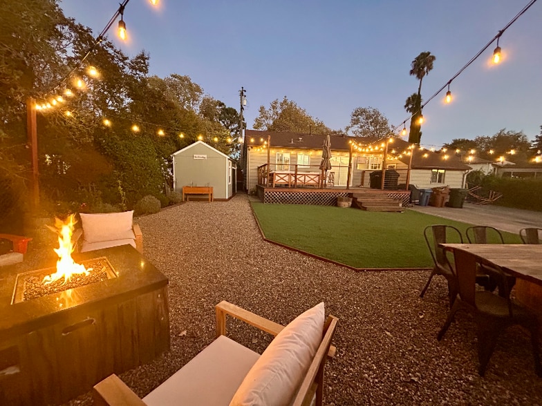 - On a large lot with a beautiful backyard perfect for entertaining (large deck, fire pit area, new turf)