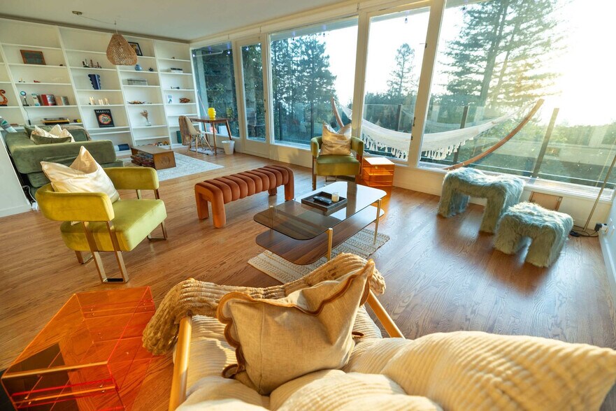 Feel at home in this mid-century modern home perched in the Berkeley Hills, designed by renowned architect John Funk. This peaceful 2-bedroom retreat offers sweeping views of the Golden Gate Bridge, San Francisco skyline, and the shimmering Bay. The kitchen is thoughtfully equipped for cooking and enjoying meals at home, with large windows framing garden views. The bright living area invites you to unwind with panoramic views, comfortable seating, and abundant natural light. The home also features central Nest smart heating and large windows integrating home and nature. Driveway parking and two street parking spots are available, one directly in front of the driveway. Enjoy the quiet, private hilltop location, just a short drive from UC Berkeley, the Gourmet Ghetto, and North Berkeley’s shops and restaurants. The home offers direct access to the terraced garden and outdoor spaces, with 7,000 sq ft of garden and outdoor terraces. Enjoy extraordinary Golden Gate, skyline, and Bay views, as well as deer and wildlife sightings. Quiet hours are between 10:00 PM and 8:00 AM. [SI]