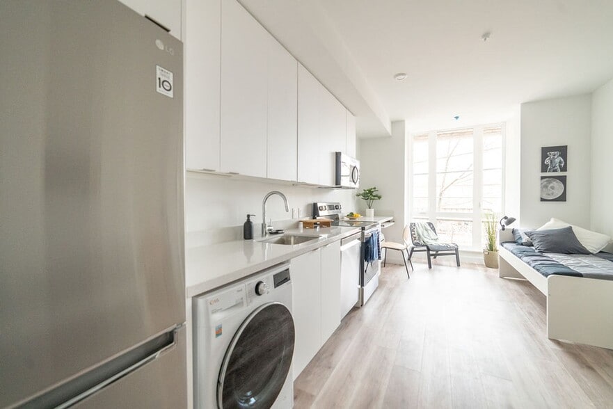 At RISE at Berkeley, our studio floor plan provides everything you need to make college life smooth. Every apartment home for rent features a kitchen equipped with appliances to accommodate your meal preparation, and air conditioning and heating ensure your comfort all year round. A stylish kitchen and wood-like flooring bestow a modern décor, and furniture options are available to help lessen your load. In-unit washer and dryer make your laundry day a breeze.