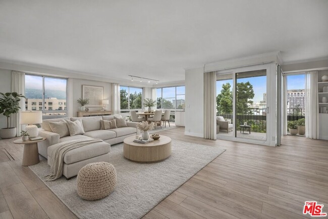 Luxury penthouse living at its finest in the heart of Beverly Hills. Sweeping hillside and city Views paired with timeless luxury define this newly remodeled corner penthouse located in the highly coveted Maple Towers in prime Beverly Hills. This expansive 2-bedroom, 2.5-bath residence with den offers approximately 1,989 square feet of beautifully updated living space with hardwood floors throughout. The open living and dining areas are ideal for entertaining, featuring a fireplace, wet bar, and floor-to-ceiling windows that flood the home with natural light and open to a private balcony with elevated views.The spacious primary suite includes an impressive walk-in closet and a luxuriously remodeled bathroom with dual sinks. All bathrooms have been recently renovated, and the home offers excellent storage with custom built-in cabinetry throughout.Additional features include an in-unit washer and dryer, a dedicated laundry room, and two side-by-side parking spaces. Maple Towers is a full-service luxury condominium offering a pool, spa, and recreation room, with a premier location just moments from Rodeo Drive, world-class shopping, dining, and entertainment. Ideally situated across from Live Nation and close to everything Beverly Hills has to offer. MLS# 26642755
