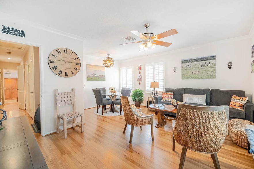 The home is well-maintained and tastefully updated. Bright and spacious living room with original hardwood floors, crown molding and plantation shutters is perfect for family gatherings. Kitchen comes with new appliances, granite countertops, dual sink and a breakfast nook with built in custom seating area. Bedrooms will make a perfect room for a home office, or a guest room with an updated hallway bathroom nearby. Extra large master suite has a seating area, built in wardrobe, split A/C units, and a newly remodeled modern walk-in shower.
