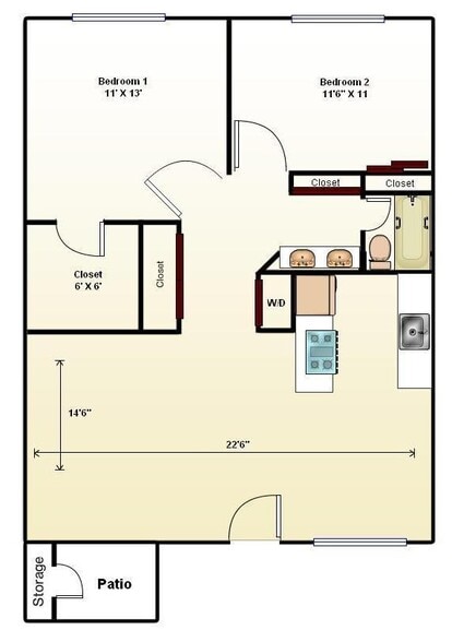2 beds, 2 baths, 950 Sq Ft, Available Jun 11