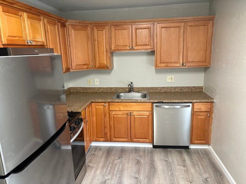 Clean , updated , 2 bedroom 1 bath upstairs apartment in a 4 plex. FREE Water, Garbsge ,Sewer, use of washer and drier in building . Easy parking for 2 cars . No carpets . Stainless steal appliances . Great tenants live here . Large shared yard . Owner managed .