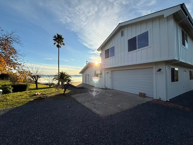Beautiful country home on 40 private acres, 15 minutes from downtown Cloverdale. This renovated 1,988 sq ft property features 3 bedrooms, 2 baths, and complete privacy with panoramic valley views. Modern kitchen with new appliances including dishwasher and refrigerator. Central heat and AC with 5-zone system. Wood-burning fireplace. New washer/dryer included. 2-car garage. Expansive wrap-around deck perfect for outdoor dining and enjoying sunsets. Private drive with security gate and newly surfaced road. Easy access to Cloverdale cafes and shops. Room for horses, goats, and chickens (tenant responsible for pen/fencing). Water and sewer included. Tenant pays all other utilities. Available January 15, 2026.