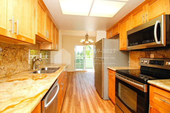 Interested? Book a tour here: For interested prospects, please provide a mobile number so we can easily get back to you with answers on your inquiry. Welcome home to this 2 bedroom, 2 bathroom, 1108 square foot, two-story townhome in a quiet community. This home has been updated, and the redone kitchen boasts lots of new maple cabinetry, glossy marble countertops, a stainless steel refrigerator, range, dishwasher, and microwave. The sink has a garbage disposal. There is a washer/dryer in unit. The living room features vaulted ceilings, rich hardwood laminate floors (that run throughout, too), and a fireplace to cozy up to. Sip your morning coffee on your balcony off of your master bedroom. The upgrades continue with marble in each of the four-piece baths. Tree-line views from the upper deck. 2-car attached garage with direct access for parking. Forced air heat and central air conditioning so you'll always be comfortable. The bus station is right behind the townhouse. Near BART, Min's Kitchen, Norcal Prime Foods, and top-rated Concord High School.