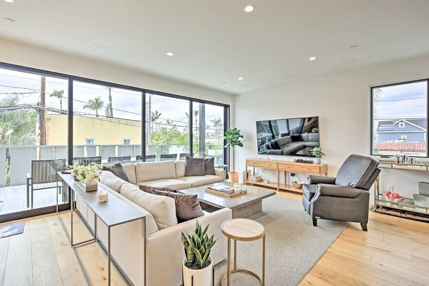 Feel at home in this sleek 3-bedroom, 3-bath condo in the heart of Coronado, offering endless exploration right outside the door. This is a 2nd-floor unit with elevator and stairs available. This modern vacation rental features a full kitchen, patio, 4 Smart TVs with cable, Amazon Alexa, stereo, ample sofa seating, a dining table/nook, walk-in closets, one walk-in shower, two shower/tub combos, floor-to-ceiling windows, modern furnishings, high-speed Wi-Fi, and in-unit laundry. The fully equipped kitchen includes cooking basics, a breakfast bar, a bar cart with barware, a Keurig coffee maker, toaster, blender, ice maker, water filter, dishware/flatware, a garbage disposal, and spices. Also included are laundry detergent, linens/towels, an iron/board, complimentary toiletries, a hair dryer, hangers, beach towels, trash bags/paper towels, books, a metal wagon to carry supplies up the elevator, and board games. This is a pet-friendly property with a $150 fee, plus fees and taxes. Parking is available in the tandem garage for compact cars only (one vehicle), and free street parking is available. Experience the atmospheric dining, shops, and beaches nearby. Downtown San Diego is just minutes away. No smoking, events, parties, or large gatherings are permitted. This property features one Google Nest exterior security camera located on the door, facing outward toward the front entry. It does not look into any interior spaces. The camera records video and sound when activated by motion. It will record when it first senses motion and 30 seconds after the last motion is detected. Includes high-speed Wi-Fi, a WFH-friendly space, and ample sofa seating. [SI]