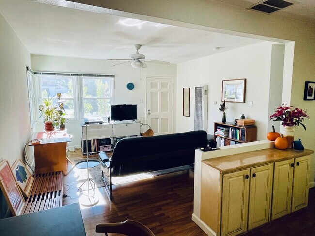This unit is a duplex on a quiet cul de sac. It has one bedroom and the bathroom has been recently renovated. Amenities include a washer and dryer for just this unit, 2 air conditioners, ceiling fans in both living room and bedroom. Half of the garage and driveway are for you to use (other half shared with front unit of duplex). The location is perfect for walking into downtown Culver City restaurants, the Culver Steps, Trader Joes and the Arts District boutiques. Will discuss small pet but requires an additional "pet rent' per month.