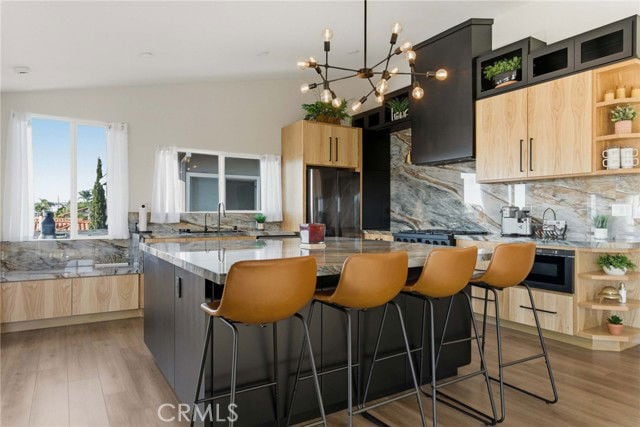 - Fully remodeled upstairs unit of a duplex offering 2 bedrooms and 2 bathrooms with stunning ocean views from the living room, kitchen, and office space just off the kitchen perfect for working from home. The chef s kitchen features an oversized 7 x 6 island, soft-close drawers and cabinetry, natural stained white oak paired with matte black cabinets, and premium appliances including a 6-burner Cosmo gas range, 36 Cosmo gas oven, Samsung dishwasher and refrigerator, and a black stainless-steel sink. The open living area is anchored by a 65 electric fireplace, designer wall colors, dimmers on all ceiling lights, USB/USC outlets, and wall-mounted TVs in every room (included). Laminate flooring throughout with 5½ baseboards add a modern, cohesive feel. Double-pane windows in the kitchen, living room, and office enhance comfort and efficiency. Spa-inspired bathrooms include a deep soaking tub with extra-tall glass doors, defogging mirror with three-mode lighting, handheld and rain shower heads, heated towel bars, smart toilet, and Bluetooth exhaust fan. The primary suite offers two large closets, ceiling fan, and an ensuite bathroom with a walk-in shower featuring a built-in seat, rain shower head, six body sprays, and heated towel rack. Enjoy outdoor living with a large private balcony plus a shared front deck. Additional features include one-car garage and driveway parking. A rare opportunity to rent a beautifully upgraded unit with high-end finishes and ocean views. Listing provided by: Foley, Bonnie of First Team Real Estate LA State License 01008773 Listing posted by Orange County [SYNDID 4150610 01262026]