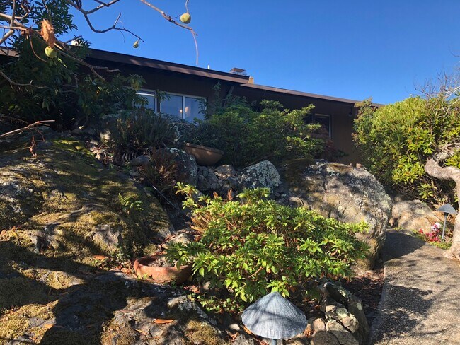 This architecturally stunning property with panoramic bay views. This single level home is surrounded by giant boulders, trees, shrubs and beautifully natural landscaping that all but obscures the home from the street and neighbors creating a peaceful and private oasis. The space is well laid out with all three bedrooms on one end of the house and the living room, dining room, kitchen and den on the other side. Enjoy the eat-in kitchen and dining "nook" with two floor-to-ceiling windows in the corner where light, boulders and foliage surround you. There is a bonus room (den). The formal dining room has sliding doors that either open or close it off from the large living room where you are greeted by sky-high ceilings and a grand fireplace for the chilly bay nights. Extensive and recently upgraded decking with multiple means of access extends across the west side of the house. A multitude of windows provide stunning views throughout the house. The two west facing bedrooms have wooden shutters on the windows that adjust in multiple ways maximizing the views and breezes. A detached 2 car garage is accessible from the driveway and side deck, and there is a workshop space located below the house for additional storage. The driveway fits multiple cars. The property is included in the book Berkeley Rocks by Jonathon Chester which depicts properties that represent “stunning geographical treasures, architecture and landscape art…” of the Berkeley hills. It also shows how the rocks have been incorporated into home and landscape design by visionary architects such as Hardison and Komatsu who designed 1409 Brewster Drive. The house has also been included as a point of interest on various home and architecture walking tours. The property is located within walking distance of the highly acclaimed Madera Elementary School and the beautiful Arlington Park and tennis courts. The third and fourth fairways of the Mira Vista County Club are a mere half block away. A short drive brings you to both the El Cerrito Plaza and BART station. Shopping and dining options abound. AI Scheduling by text - email - Maryanne “MJ” Schmidt Cell Office DRE 02125244 BRE # 01516255 *We are an Equal Opportunity Housing Provider and follow all fair housing laws. For more information, contact California Department of Fair Housing and Employment (DFEH) at