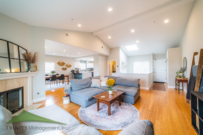 Gorgeous home in this gated community in Encinitas that is truly a hidden gem! Open floorplan with vaulted ceilings upstairs allows sunlight to flow into the living areas and kitchen. Updated kitchen with eat up bar with adjacent dining area that spills out onto the large deck with beautiful city and mountain views. Downstairs you have two large dual master bedrooms, one with a bonus room perfect for an office or craft room. Enjoy the peaceful low maintenance backyard with patio area and zen like succulent garden. 2-car garage with storage and washer / dryer. A/C. Great location in the heart of Encinitas, close to shopping, restaurants, beaches and more!