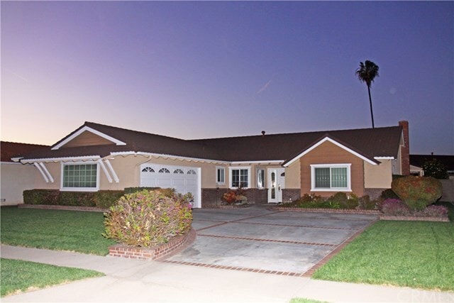 Expanded and Upgraded Talbert Village Home with 3 Bedrooms, Plus a Hobby Room or Office with Built-In Desk and 3 Full Bathrooms - AND 2 of the Bedrooms are Master Suites - 1 has Giant Walk-In Closet! Beautiful Curb Appeal at the End of a Cul-de-Sac. Central Air Conditioning. Beveled Glass Entry Door with Matching Sidelight to Tiled Foyer. Formal Living Room has Crown Molding and a Crackling Fireplace. Large Tiled Dining Room with Built-In Granite Buffett Counter with Cabinetry. Large Family Room. Beautifully Remodeled Kitchen with Granite Countertops, Designer Tile Backsplash with Granite Inlay, Custom Cabinetry with Under Counter Lighting, 5-Burner Gas Cooktop, Stainless Double Ovens, Microwave, & Dishwasher, and a Breakfast Bar. Slider from Family Room and Living Room Leads to the Backyard that's made for Outdoor Dining and Entertaining with Cathedral Ceiling Covered Patio with Lighting, Built-In BBQ, Plus Grassy Yard with Raised Planters and Flower Gardens. Short Drive to Beach. Close to Shopping, Dining, and All Top-Ranked Schools - Tamura, Fulton, and FVHS