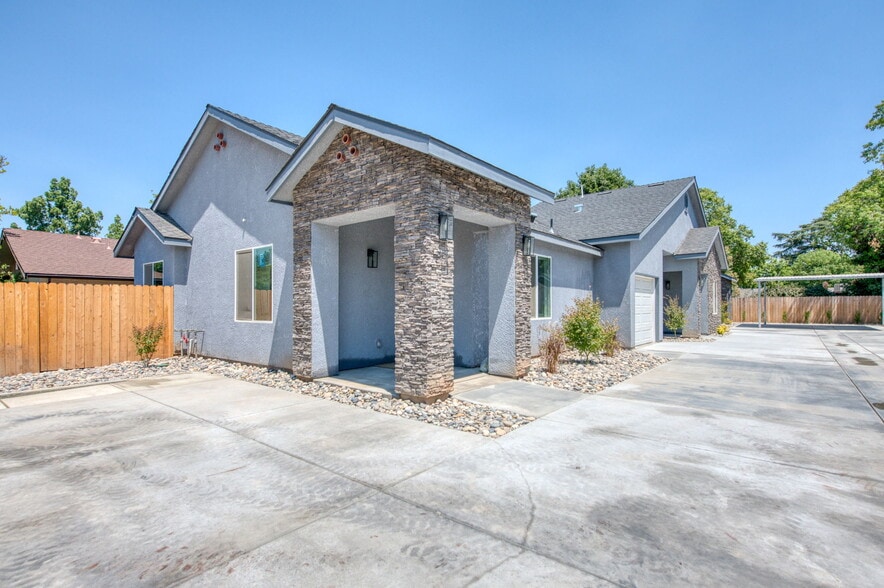 BRAND NEW BUILD! SOLAR PANELS! INCLUDES INTERNET & TRASH SERVICE. SAVES $100s MONTHLY! Tucked away in quiet Old Fig Garden neighborhood, this 3-bedroom home is beautifully appointed. Vaulted ceilings and large windows allow for plenty of natural lighting in this open-concept space. Custom bathrooms & window treatments along with gorgeous plank flooring provides a modern-transitional aesthetic. Solar panels, AC/heating, refrigerator, microwave and washer/dryer are provided. Attached 1-car garage and private-gated yard with no-maintenance for outdoor enjoyment. Outdoor security cameras installed as well as locked mailbox. This property is an end-unit of a Triplex building. Welcome home to Fig Tree Lane!