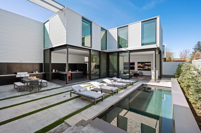 Fully furnished three bedrooms and 2.5 bathrooms. Expansive indoor & outdoor downstairs living & dining areas. The pool, outdoor kitchen, and outdoor patios separates the indoor and outdoor living areas with sliding 13' glass panels. There is an office that overlooks the private outdoor area. This home features Wolf & Sub-Zero appliances, built-in Sonos speakers, and a remote-controlled fireplace. Located two blocks from downtown Healdsburg's central Plaza and approximately seventy miles north of San Francisco. The Glass Pavilions sit at the crux of the Russian River Valley, Dry Creek Valley, and Alexander Valley viticultural areas and within steps of Michelin-starred restaurants, numerous tasting rooms, and breathtaking wineries. Construction was completed in 2022 and designed by celebrated architects Stanley Saitowitz, and Natoma Architects Inc. The home features a tasteful minimalist design, from its tranquil bedrooms to secluded courtyards. High walls and greenery offer near total seclusion from neighboring properties, while translucent glass in the façade creates street-side privacy for the front townhouse. Short Term Lease: (3-6 Months includes Utilities) $9,495/mo Long Term Lease: (12 Months includes Pool Service, tenant pays all utilities) $8,900/mo