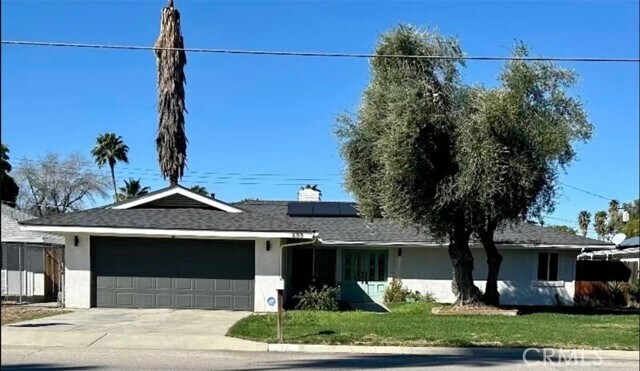 Welcome to this beautifully maintained single-story home in Hemet — a bright, comfortable space designed for easy living. Enjoy the convenience of central A/C and the added savings of solar panels included with the lease. Step through the impressive double-door entry into a home filled with natural light, neutral paint, and modern fixtures throughout. The spacious living room features a stylish fireplace, and an additional bonus living area offers the perfect spot to relax, work, or entertain. This immaculate home includes 3 generous bedrooms and 2 upgraded bathrooms, along with double-pane windows and laminate flooring in a neutral tone that complements any décor. The kitchen offers a clean, modern look with white countertops, plenty of storage, and an open flow to the dining area. The primary suite includes a large bathroom with double modern sinks and a separate shower for added comfort. Outside, the spacious backyard features a covered patio and a mix of grass and concrete — ideal for outdoor dining, play, or simply unwinding. A two-car garage adds even more convenience. With 1,518 sq ft of living space on a 7,405 sq ft lot, this home offers room to spread out while maintaining a warm, welcoming feel. ** FURNITURE IS NOT INCLUDED ** MLS# CV26060697