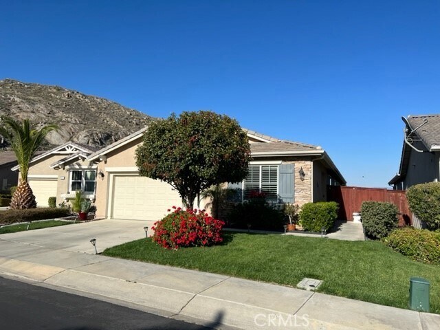 This is a great opportunity to live in a Master3 single-level home in the prestigious 55+ gated community & 24-hour roving patrol of FOUR SEASONS HEMET. This home is located in a cul-de-sac with great curb appeal. You will love the beautiful views of the mountains from the backyard, and the snow during the winter months. Call it home with 3 bedrooms, 2 full baths, tile floors, plantation shutters, wood blinds, ceiling fans, and a fireplace with built-in cabinets. The kitchen has a granite countertop, upgraded cabinets with pull-out drawers, a stove & dishwasher. Walk-in closets, dual sink vanity, private commode & bathtub too. Seat & relax in the backyard with lovely views - perfect for entertaining, an Alumawood covered patio with lighting, a low-maintenance yard with artificial turf, and a side yard—all landscapes on automated sprinklers/drip system. Many amenities and activities in the Four Seasons Community include a large Lodge with a Bistro, a movie theater, a library, a billiards room, a computer room, a craft room, a ballroom, a gym, and a salon. Outside is a large pool & spa, tennis courts, bocce ball, pickleball & large BBQ area. There is a lot to do here in this great community. Live here and call it your home, and enjoy life. The home is well-maintained & ready to move in. To apply, go online: MLS# TR26091319