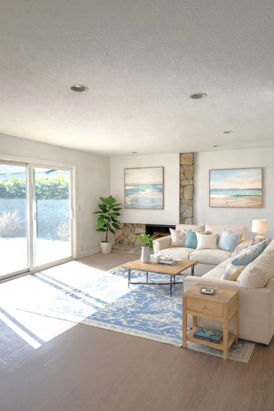 Just 2.5 miles from the ocean, this lovingly maintained 3-bedroom, 1-bath home offers comfortable coastal living in a family-friendly neighborhood. Updated vinyl flooring, fresh paint, ceiling fans throughout, and abundant natural light create a bright, inviting space. The living room features a cozy fireplace, and the kitchen includes a dishwasher and brand-new refrigerator.