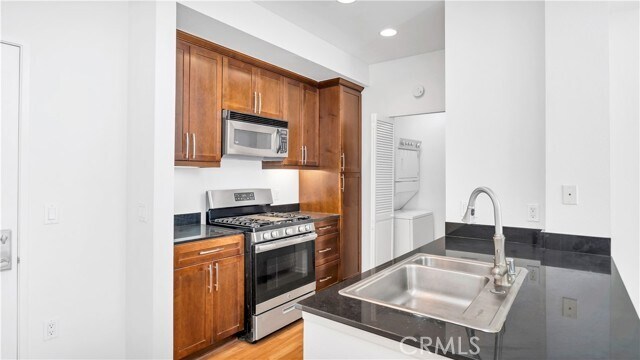 Discover this stunning 2-bedroom, 2-bathroom condo with a loft and impressive 18-foot ceilings in the exclusive Avenue One community, conveniently situated off Jamboree Road and Dupont. Located on the 4th floor with no neighbors above, this private unit features granite countertops throughout, new carpets, fresh paint, and new laminate flooring on the stairs and loft. The modern kitchen is equipped with stainless steel appliances, including a refrigerator. Enjoy the convenience of an in-unit laundry with a washer and dryer. The clubhouse offers a comfortable lounge with a plasma TV, a fitness center, pool tables, an indoor basketball court, a pool, and a jacuzzi. Centrally located in Irvine, this home is close to shopping and major freeways. Don't miss your chance to see it!