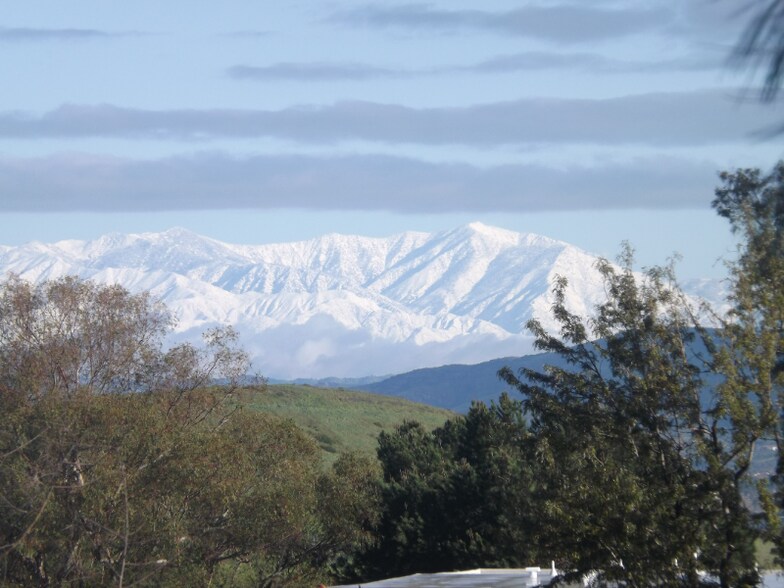 Full view of the local hills, snowcapped mountains and city lights facing east / northeast. Incredible day and night time views. Only one mile to Laguna Beach / Irvine / Lake Forest and walking distance to local mountain hiking. Five minutes to the beach.