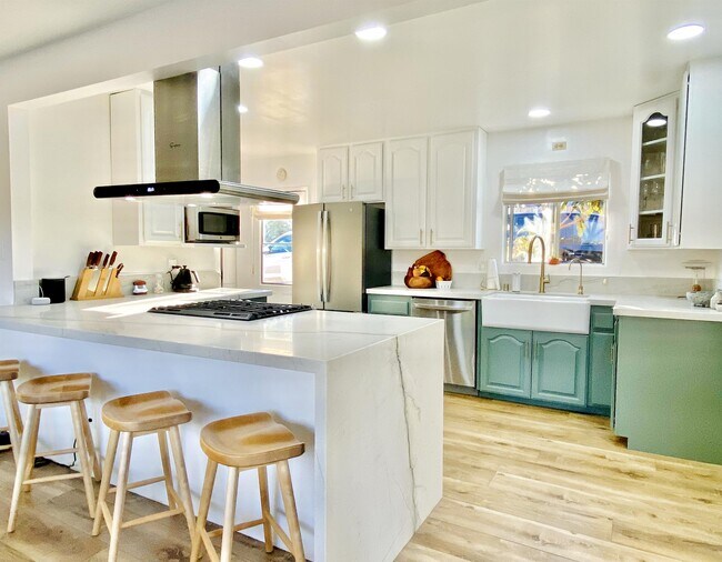 Available for move-in early June Beautiful, fully remodeled Lakeside home at the top of a hill with views across lakeside all the way to El Cap and Cuyamaca mountains. This home has central heat & AC, In unit laundry, a spacious back patio for your outdoor living and BBQ'ing. Large side yard with mature citrus(lemons & oranges!) fruit trees and room for gardening. Two spacious bedrooms and a full bath with recently remodeled shower downstairs. Upstairs is the entire primary suite including an incredible spa-like bathroom w/ dual shower and a large double sink vanity, and private upper deck with those priceless views and cool breezes. 2 car parking spaces in the driveway. Small pets will be considered. There is an ADU apartment at the back half of the property, so driveway access is shared. You have your own private fenced yard and patio areas. All utilities are paid by resident, will be split on a ratio utility basis. Call for details. SDGE, water and trash are paid by resident.