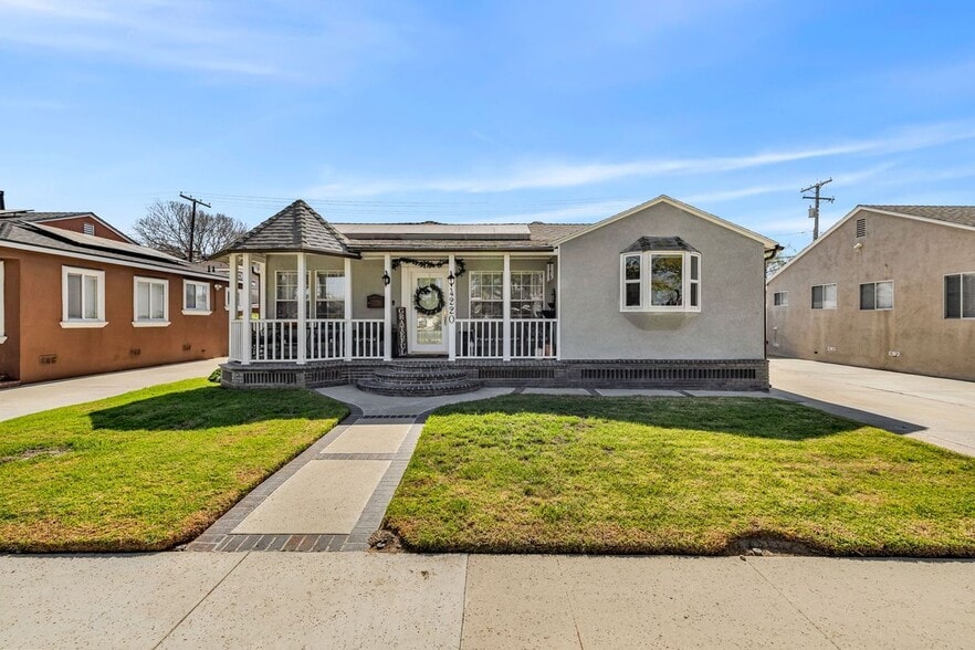 Beautifully maintained Carson Park home showcasing exceptional curb appeal and thoughtful upgrades throughout. This inviting 3-bedroom, 1-bath residence offers approximately 1,120 square feet of well-designed living space on a generous 5,315 sq. ft. lot. Inside, the home features a stylishly remodeled kitchen complete with crisp white cabinetry, granite countertops, custom tile backsplash, farmhouse sink, recessed lighting, ceramic tile flooring, and abundant storage. The interior is enhanced by newly refinished oak hardwood floors, updated light fixtures and ceiling fans, crown molding, dual-pane windows, and central A/C and heating for year-round comfort. The upgraded bathroom includes ceramic tile finishes, a pedestal sink, soaking tub, and glass-enclosed shower. Additional highlights include copper plumbing and a convenient indoor laundry area with washer/dryer hookups. The spacious living room flows seamlessly into a formal dining area and extends to a versatile bonus space—ideal for a home office or flex use—with direct access to a covered patio, creating an excellent setup for indoor-outdoor living and entertaining. Exterior features include fresh paint, a detached two-car garage, a secure vinyl gate, and custom-designed front and rear porches that add character and charm. Both front and back yards are equipped with timed irrigation systems, while mature lemon and plumeria trees provide a lush, fragrant outdoor setting. Ideally located near shopping, schools, parks, golf, and major freeways, this home offers both comfort and convenience. A fantastic leasing opportunity in a desirable Lakewood neighborhood—don’t miss it!