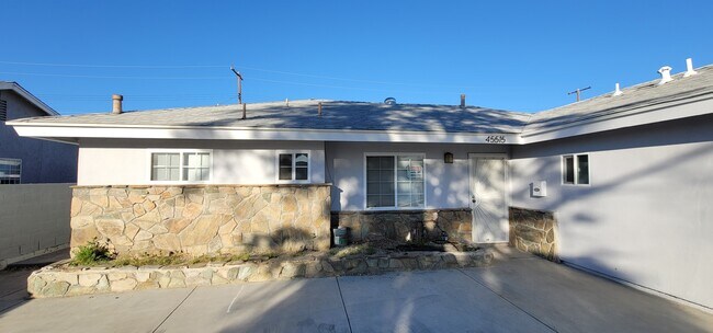 **Applicant has been approved. PENDING lease signing**. Nice 4bd/2ba house with huge back yard and covered patio. Carpet in bedrooms. Laminate and tile flooring in all other areas. Plenty of kitchen cabinet storage. Stove included. Washer/dryer hookups. Central heating and AC and a window evaporative cooler in the main living room. Driveway and street parking available. (NOTE: This is a duplex. Garage legally converted to a nice ADU studio apartment and rented separately.) Wi-Fi, trash, and lawn maintenance included in the rent.
