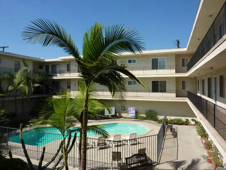 Ground Floor Unit - Tenant pays electric only. New carpet in living room hall and bedrooms and vinyl planks in kitchen, dining room and bathroom, fresh paint and new mini blinds. Kitchen equipped with stove, refrigerator and microwave. Patio off one of the bedrooms. Gated building with swimming pool. Laundry room on site. Conveniently located near parks and beach. Shopping and dining steps away on Broadway. Street parking only. Month to Month $40 Application Fee