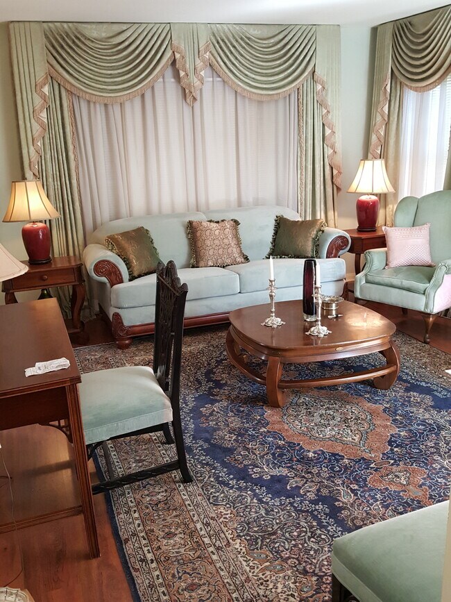 This is the mother in laws unit at my home in Bluff Heights, just two blocks from the ocean nnear the corner of Temple Ave and Broadway. It is a 1913 house painted gray with white trim. The unit is a spacious one bedroom fully furnished. The living room has a Turkish Persian Carpet, with Silk Brocade Seafoam Green Draperies. The furniture is matched in Seafoam Green Upholstery, with Pink Brocade highlights. Black lacquer chairs and a mahogany round table in front of an amazing Round Glass and black lacquer coromandel. The paintings on the wall are mostly Ching dynasty. The kitchen has varisipalla Grantie in a gold and black color. White cabinetry. Gas stove, and newer refrigerator. Microwave included. Undermount stainless steel sink. Full set of china, glassware, silverware, utensils, and pots and pans. The bedroom is large and contains Provencial armoire and a mahogany inlaid chest of drawers as well as a silk damask settee. Crystal light fixtures, and a fabulous bathroom of Emperador Dark Marble and mahogany chest with a Rhodonite top. Antique medicine cabinet and trimmed with antique wallpaper border to cooridinate with the darker green walls. Outside is a shared patio with red embroidered Silk Saris hanging from the trellis top. White wicker chairs and settees. and a white marble mughal round table in the center. Full laundry facilities in the garage in back. A large parking space in the driveway next to the house.
