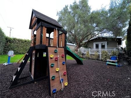 Desirable Lakewood Village remodel with modern open floor plan that opens up to a backyard deck. Three bedrooms two bathrooms plus a fully temperature-controlled converted garage that doubles as a detached office with a large 10ft window for natural light and brand new epoxy flooring. Master suite complete with a giant walk-in closet, double sink vanity, plus french doors that open to a 2nd deck with a view of the backyard, lined with lush mature hedges for total privacy. Inside laundry hook-ups with a dedicated laundry room with storage cabinets off of the kitchen. Real hardwood throughout the house with tile flooring in the 2 full bathrooms. Central air conditioning and heat. Each bedroom has a ceiling fan. Remodeled hardscape and landscape with new sprinklers. Updated lighting fixtures. Modern window coverings. Wooden play/swing set installed safely with rubber mulch ground cover. Hardscape side yard.