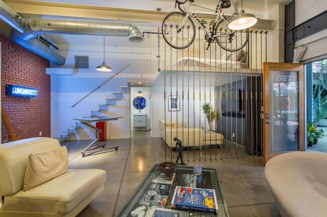 Modern work live artists loft with unique floor plan and dedicated outdoor patio space. Significant natural light from open courtyard space filled with lush greenery and dramatic tree canopy providing both privacy and diffused light. Subtle property design by renowned Long Beach architectural firm known for award winning loft conversions in the DTLB area. Washer dryer in unit, sizeable chefs kitchen, polished concrete floors. Unique Floorplan with Turnbuckle feature wall, elevated sleeping loft and Sizeable storage Space above large walk in closet. Full tub shower in nicely equipped restroom. pet owners ok. See pics.