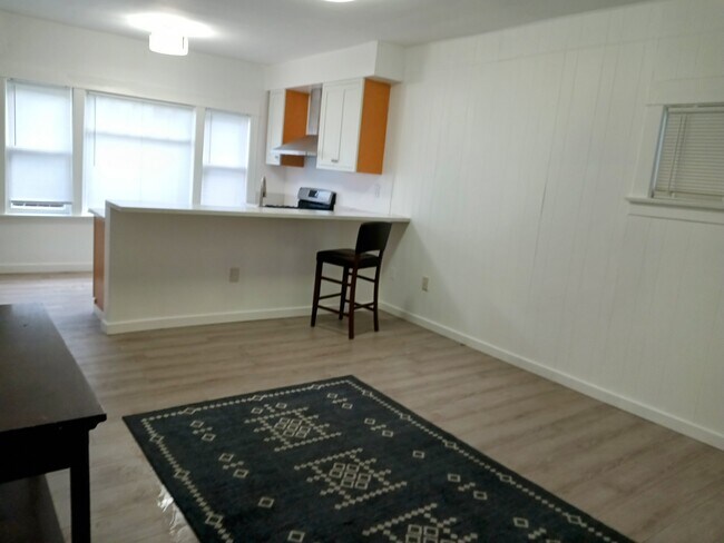 Newly renovated 800 sq. ft. two-bedroom apartment for rent. Unit has a full kitchen with stainless steel appliances gas-stove, full bathroom with tub. One larger bedroom and one smaller bedroom. Separate gas and electricity - tenant responsibility. Quiet property with three other tenants. Laundromat on the next block. This 2 bedroom - 1 bath apartment is on the ground level.