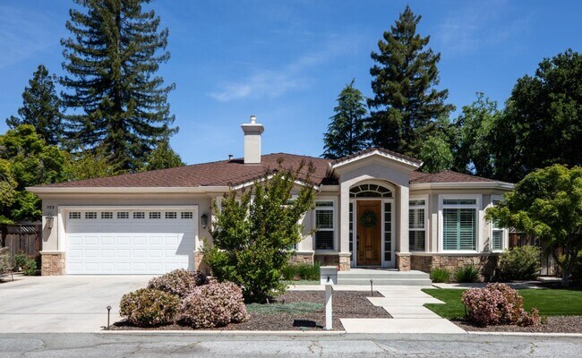 Nestled in Los Altos on a quiet cul-de-sac, this modern 4-bed, 3.5-bath +/-3597 SF at 955 Stanley Avenue offers luxury on +/-12432 sqft lot. High ceilings throughout this home. Large office with built in desk and bookshelves views the front grounds offers abundant light, perfect for at home work. Skylights illuminate the living and dining areas, complemented by a chef's kitchen and butler's pantry. There is an eat in area off of the kitchen with soaring bay window that views the rear grounds. The kitchen also opens to a large family room with fireplace. The primary suite features a spa-like bathroom and walk-in closet. A spacious backyard with pool, soccer field type grass area, recently replaced with artificial turf, raised beds, and alfresco dining area add to the charm and perfect California living. With laundry room, garage, and AC, this home seamlessly blends luxury and functionality. Experience convenience and sophistication in the heart of Los Altos.