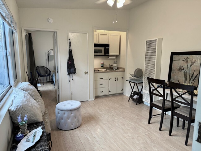 This 1-bedroom, 1-bathroom apartment at 10519 Chandler Blvd offers 400 square feet of living space. The unit features hardwood floors and is equipped with air conditioning and heating for year-round comfort. Residents have access to on-site laundry facilities and benefit from a gated entry with video cameras for added security. The living room provides a functional area for relaxation, while the bedroom offers adequate space for personal furnishings. The bathroom is conveniently located and includes essential fixtures. Exterior amenities include well-maintained walking and biking trails for outdoor activities. The rental price is competitive within the area, making it an attractive option for potential renters seeking a compact living space with essential amenities.