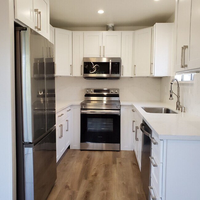 SECOND FLOOR - FRONT UNIT AVAILABLE FOR IMMEDIATE OCCUPANCY Brand New Completely renovated 2 bedrooms 2 bathrooms. (Completed Nov. 2021) Very bright! Apartment has natural light through large windows and doors. All bedrooms also very bright with large windows Brand new custom white wood window blinds Front Second Floor Unit with a Large Balcony Plenty of Closet Space Enjoy fully-equipped kitchen offering plenty of meal prep space with brand new top of the line Samsung stainless steel appliances and Quartz counter-tops Brand new LG washer and dryer Inside the Unit Hard wood flooring offers the warmth, beauty and high-end aesthetic layout Dimmable LED recessed lights in the kitchen, dining room, and bathrooms One Covered parking spot. Beverly Hills adjacent. Quiet and safe. Easy access to Olympic, Wilshire, 10 and 405 Freeways. Walking distance to La Cienega park, Cedars Sinai and popular shopping destinations.