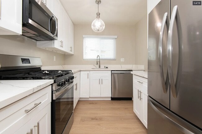 This beautifully remodeled townhome boasts 1,300 sq. ft. of living space with luxurious upgrades throughout! As you enter, you will immediately notice the NEW laminate flooring, the open living and dining floor plan with lots of natural light. The living room is a perfect place to relax and unwind with a shared dining area and direct access to the private balcony that will easily fit an outdoor patio set. There is also a large picture window and a wall A/C that will keep the entire space cool. The designer kitchen offers style and function with NEW premium stainless steel appliances, complemented by NEW quartz countertops, NEW custom cabinetry and recessed lighting and two big kitchen windows. Next to the kitchen is the NEWLY remodeled half bath with a NEW pedestal sink and NEW custom framed mirror. As you go up upstairs, the two primary bedroom suites take up the entire floor! There is also additional storage in the hallway and stackable washer/dryer. As you enter the first bedroom, it is very spacious with a large window for lots of light, NEW wall A/C and mirrored closet doors with a bonus second closet that has shelving and provides needed storage. The attached full bathroom shines with NEW custom quartz tile, NEW quartz countertop, NEW shower/tub combo and NEW designer mirror. The second bedroom is also very large and has its own private entrance. It features a NEW wall A/C and has a unique, elevated, wall to wall closet. The NEWLY renovated bathroom has a NEW quartz tile, NEW vanity and designer mirror and a separate vanity. This is a stunning townhome. Schedule your tour today! This prime BRENTWOOD location is north of Wilshire and a short walk to the charming San Vicente stores and a great selection of restaurants. Bike ride or drive to Santa Monica Beaches and Mountains. Less than A 10 minute drive to UCLA, Santa Monica College and the Art Institute and LAX. Close to USC, LMU and SMC. Closely adjacent cities are Westwood, Century City, Beverly Hills and Santa Monica. Easy access to the 405/10 Freeways. Contemporary 9 unit building in prime Brentwood neighborhood is walking distance to Wilshire and San Vicente Blvd. Includes assigned parking and on-site laundry facilities. Earthquake retrofit improvements completed. Professionally managed and online rent payments available.
