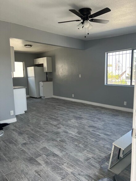 Not to be missed clean, beautiful, fully remodeled 3 Bedroom, 1 Bath Unit on 2nd floor, Stove, Refrigerator, AC , Heater & Ceiling Fans included, 1 car park spot, Owner pays water and gardening, Tenant pays Electric and gas, Available immediately.