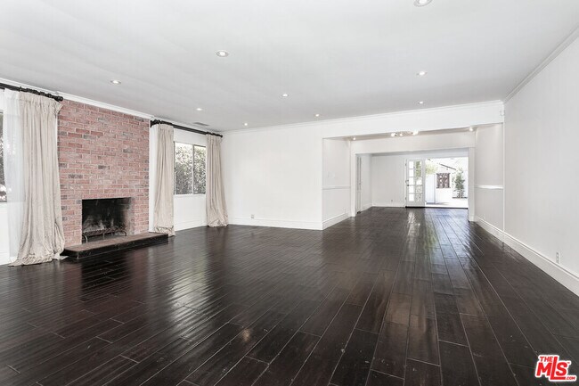 This charming, traditional home with a wonderful flow is located on a quiet tree-lined street within walking distance to Roxbury Park and Beverly Hills shops and restaurants. Spacious living room with fireplace and large windows leads to open concept dining area and den/family room. French doors open to a cozy backyard with bricked patio, perfect for entertaining. Large, private primary suite w/double closets and updated bathroom, two secondary bedrooms with ample closet space and updated bathroom, and newly remodeled bright kitchen w/ stainless steel appliances, marble countertops and eat-in breakfast nook. Laundry room with new built-in pantry and storage space and maids/guest room with adjacent bath. This home exudes happiness and tranquility while being perfectly located. A must-see.