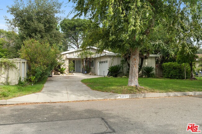 Nestled in the highly sought-after neighborhood of Valley Village, this delightful 3 bedroom, 2 bath home offers a perfect blend of comfort, style, and location, conveniently located close to the award winning Colfax Charter Elementary School. With its inviting Mid-Century features, and single level layout, this home is a rare find. One side of the house features a spacious kitchen with its own breakfast nook. On the opposite side you'll find the primary bedroom with en-suite bathroom, 2 additional bedrooms and a shared bathroom. In between you'll find an open living room and formal dining area which opens out to a covered patio overlooking the pool, perfect for a warm Valley day. This gem presents an opportunity to own a charming and comfortable home in one of the most desirable neighborhoods.