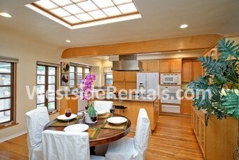 vacant Freestanding units in 1-unit building. 2-car Garage Parking. Updated Authentic Spanish Courtyard 4 bed/3 bath located on beautiful treelined Westwood street with inviting front gated paver-tiled patio. Living room with incredible character including dramatic high wood beam ceiling,picture window,built-ins& fireplace. Skylight fills the updated kitchen and dinning area with ample natural light.kitchen include center island,granite countertops& newer appliances & open to dinning area ideal for entertainers. rear master suit with full bathroom opens to deck & privately landscaped backyard.4th bedroom w/en-suite 3/4 ba & backyard access.Hardwood flooring throughout.central heating and air conditioning.laundry room off kitchen w/access to side yard driveway.converted finished garage ideal for home office.