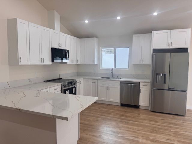 OPEN HOUSE - TUE 4/28 1:30pm - 2pm. Brand New 2025 Construction with Solar. Be the first to live in this brand-new 2025 built 3-bedroom, 2.5-bath home offering approximately 1,240 sq. ft. of bright, open living space on a quiet residential street in Van Nuys. Designed with comfort and efficiency in mind, the home features high ceilings, recessed lighting, modern fixtures, and an open layout filled with natural light. The home is equipped with brand new appliances, mirrored closet doors in bedrooms, central HVAC, in-unit washer and dryer, tankless water heater, and newly installed solar panels, helping significantly reduce monthly electric costs. Additional highlights include wide 36-inch doorways and single-level living with no stairs, providing convenient accessibility in case there are special tenant needs. Enjoy private front and side yard areas along with gated parking for added security and convenience. The property itself offers a versatile layout with three separate homes on one lot, each private and divided by new white vinyl fencing. The two rear homes are brand-new 2025 construction (duplex), while the front home has been newly renovated, creating multiple housing options on the property. Flexible property layout may be ideal for extended families, multi-generational living, or care-related housing due to the accessible design and separate residences. Conveniently located near shopping, dining, and major commuter routes, yet tucked away on a peaceful residential street with ample street parking. - Three properties for lease, tour all 3 homes available for lease on same lot and choose. 15950 and 15952 Cohasset and 7454 Gaviota. Available now. Easy to show and apply.