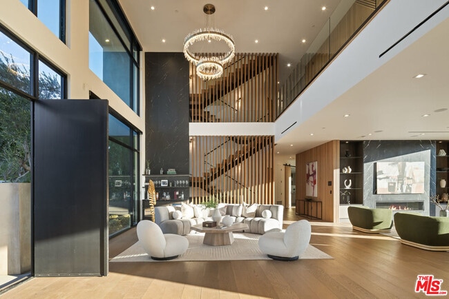Nestled on a tranquil cul-de-sac within Encino's exclusive Royal Oaks neighborhood, this breathtaking estate redefines luxurious living. Privately set behind gates, the property boasts sweeping views and an expansive floor plan designed for both comfort and sophistication. The main level features a gym, state-of-the-art theater, office, and an en-suite guest bedroom. Seamlessly connected living, dining, and kitchen spaces open to a stunning backyard, where panoramic vistas enhance every moment. Outdoor living is elevated with a cozy fire-pit lounge, a summer kitchen, and an al-fresco dining area, creating an idyllic retreat.The primary suite offers a true sanctuary with unparalleled views, dual walk-in closets, and a spa-inspired bathroom. The upper level adds to the allure, with four spacious guest bedrooms and an inviting upstairs lounge. Crowned by a rooftop deck, the home provides a second summer kitchen and ample space to entertain under the stars. This rare gem combines privacy, elegance, and modern amenities, offering a lifestyle of unparalleled sophistication in one of Encino's most sought-after locations. MLS# 26641449