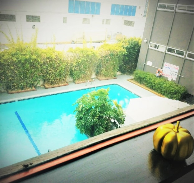 Property Id: 2364309 VERY CONTEMP., UPPER/CORNER UNIT-- 1 full wall of windows, hardwood floors (tile in bathr.), ac, all appl., generous closets, logical layout, granite computer-counter...west-end of hw, most fun/vibrant/colorful 'hood in LIFESTYLE includes: all util. but elec., 24hr laundry, gated pkg., huge pool/decks in tropical courtyard, caring manager....no smoking, no sublet/good credit essential. near all hw action, main farmers'-mkt., 2 lgbt centers, new stores, target, runyon-canyon park, best gym....