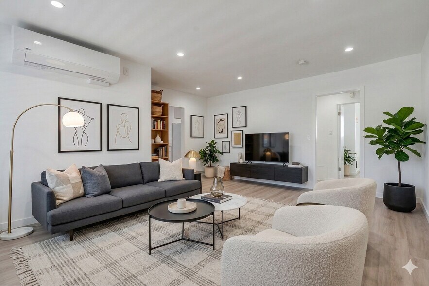 2 Bed 1 Bath Fully Remodeled Unit in East Hollywood Near Los Feliz Completely remodeled 2 bedroom 1 bathroom unit located in East Hollywood just minutes from Los Feliz. The unit features a clean, modern finish throughout with new flooring, recessed lighting, and a spacious open layout. The kitchen has been fully updated with new cabinetry, countertops, and includes a refrigerator, microwave, and oven/stove. The bathroom has also been renovated with a modern vanity and lighted mirror.