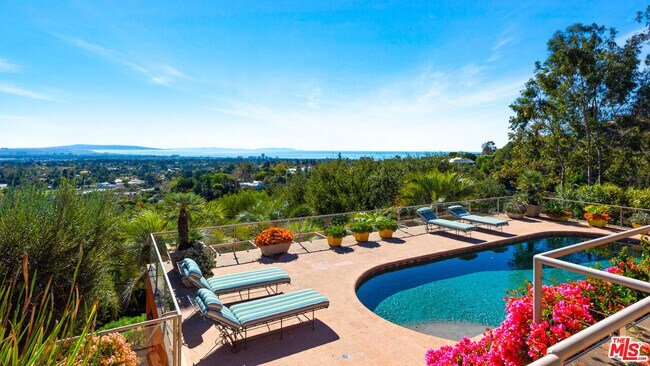Drive down a private gated driveway to a large motor court revealing a completely private & serene expansive ocean view retreat on stunning grounds just a couple of minutes from Sunset. By renowned architect Richard Martin his work showcased with high ceilings, large rooms, wood floors, multiple fireplaces & views throughout, this extremely well built home features 5 beds + 8 baths & 2 half baths including a primary suite w/dual baths & walk-in closets, upstairs private ocean view office & four additional bedrooms. Great open floor plan w/large kitchen at the center opening to an oversized & private family room on one side & an ocean view living room on the other. Lower level features a screening room, game room, staff quarters & one-of-a-kind safe room/bomb shelter. A separate glass enclosed gym w/private trainer access. Set on beautiful park like grounds designed by award winning landscape architect Nancy Powers, including stately oak trees & stunning succulent gardens, walking paths & secluded seating areas, architectural water features & destination outdoor fireplace lounges, w/a sun-drenched pool & separate spa w/jetliner ocean & city views. Large flat grass pad w/built-in trampoline set amongst California Oaks and lush Palm trees. Oversized motor-court w/ 3-car garage & direct access. This property is a true staycation.
