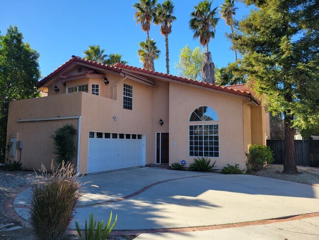 A gorgeous Mediterranean house is located at the end of a cul-de-sac. The house offers 2 living/family rooms, 2 dining areas, 5 bedrooms, 4.5 bathrooms, and a loft (can be used as bedroom #6). Fully remodeled kitchen (new cabinets, granite countertops, a new sink and faucet, all new appliances!) Ground-level welcomes you to a spacious living room with a high ceiling and a cozy fireplace. Passing the living room, you enter a bright dining area with an attached family room on one side and a kitchen on the other side. A downstairs bedroom suite featured its own bathroom and a separate guest's powder room. The 1st-floor hallway leads to an attached two-car garage. Sun-filled kitchen with a garden window and breakfast area has a sliding glass-door overlooking the backyard. The formal dining room and family room also have their own access to the backyard. The second floor features 4 bedrooms, 3 bathrooms, and a loft with skylights that could be used as a playroom, gym, or office area. The master bedroom offers two walk-in closets and a balcony that overlooks the backyard. The master bathroom comes with two sinks, a spa tub, and a separate shower. Three additional bedrooms, one ensuite, and two more with connecting bathroom and spacious terrace overlooking the front yard. Additional features include brand new hardwood floors along the whole area on the 1st floor, freshly painted interior, and recessed LED lights. A cute cozy backyard features a pomegranate tree and a covered patio with an awning. Great location with a 2-minute walking distance to the park. Easy access to the 101 freeway and close to restaurants, gym, and major shops.