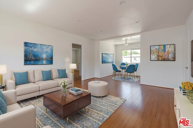 Experience modern living in this remodeled 2-bedroom, 1-bathroom upstairs unit in the vibrant West Adams neighborhood. Step into a spacious and bright living room, featuring beautiful wood plank flooring throughout. Complete with a dining area and updated kitchen, boasting all appliances - including a dishwasher and washer/dryer combo. Both bedrooms offer generous closet space and comfort with A/C units throughout. Gated entry, additional community laundry, and one covered parking spot + one tandem driveway spot. Central location with easy freeway access. Close to Whole Foods, and great restaurants such as Cento, Mizlala, Tartine, Delicious Pizza, Alta Adams, Vicky's All Day, and more!