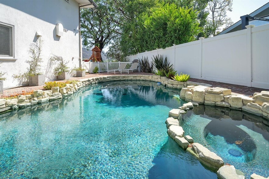 Views!!! Beautifully updated & remodeled 4 + 3.5 + den/office w/ built-ins, Comfortable 2-story Traditional Family house with Canyon Views, private fenced lagoon pool & spa, solar panel heated and automated pool control from inside of the house. Grassy backyard and patio, great indoor out door flow for entertainment. Hardwood floors throughout, High ceilings, fireplace in living room, wooden shutters. Stunning kitchen with Island, plenty of cabinets and storage. Top of the line stainless steel appliances and Subzero refrigerator. dual paned windows and doors on the first floor, remodeled powder room. Large master bedroom with views and huge organized walk-in closet. Remodeled master bath with double sinks and steam shower. Two other good size bedrooms plus a full bath on the second floor. Den/office & maids room on the first floor. Direct access Three car side by side garage with loads of storage and side by side laundry. A very quiet and peaceful family neighborhood. Shown by appointment only through listing agent, Small dog OK