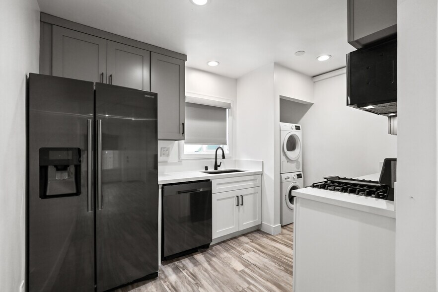 Inspired by midcentury Modernism architecture, these newly renovated rental homes are just minutes to the thriving Arts District and Downtown Los Angeles. 2743 Fairmount Street, located in the heart of Boyle Heights, features a six-unit, two-story low-rise building with enhanced modern architecture and wood accents. Carefully restored and designed by a renowned LA designer, these 1960s modern luxury rental homes feature keyless entry door locks to spacious two-bedroom floor plans with newly renovated kitchen and bathrooms. The kitchen boasts sparkling white stone quartz countertops with brand new self-closing cabinetry and high-end stainless-steel refrigerators with matching gas cooktop with oven and microwave. iRing doorbells with a smart home video security camera are also included. Bathrooms feature porcelain tiled bath tubs and glass shower doors. Each rental home also includes central A/C cooling and heating with recessed lights with luxury style cellular shade window blinds and distressed wood plank floors. Also included in the rental homes are stackable washer and dryers. Located east of Downtown LA, Boyle Heights is one of LA's most historic and vibrant neighborhoods and minutes off the 5, 10, 60, and 710 freeways. Boyle Heights, historically known as Paredón Blanco, is a neighborhood in Los Angeles, California, located east of the Los Angeles River. It is one of the city's most notable and historic communities and is known as a bastion of culture, hosting cultural landmarks like Mariachi Plaza and events like the annual Día de los Muertos celebrations. 2743 Fairmount Street has a Walk Score of 84 out of 100. This location is Very Walkable so most errands can be accomplished on foot. 2743 Fairmount Street is a 21-minute walk from the Metro L Line (Gold) at the Soto Station stop. This location is in the Boyle Heights neighborhood in Los Angeles. Nearby parks include Wabash Recreation Center, Wabash Playground and Ramona Gardens Park. Drake Real Estate Group | Welcome home | Schedule your private viewing today | | EXTERIOR | - Newly Modernized Façade - City Approved & Completed Earthquake Seismic Retrofit - Keyless Electronic Entry | INTERIOR | - Cellular Shade Window Blinds - Spacious Designer Floor Plan - Vinyl Plank Flooring | KITCHEN | - Modern Designer Cabinetry - Quartz Countertops - Stainless-Steel Appliances - Refrigerator - Range w/ Oven - Microwave - Open Kitchen Space Layout | BATH | - Tiled Shower and Bath - Glass Shower Doors - Oversized Vanity Mirror | AMENITIES | - Washer & Dryer (in unit) - Assigned Parking - A/C Units